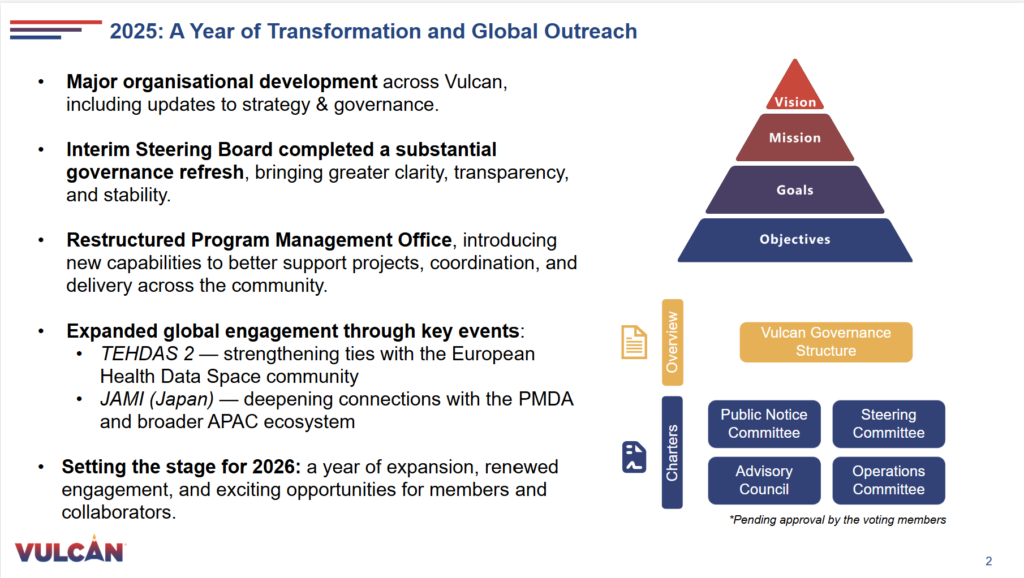 Join us for our final Operations Committee webinar of the year as we look back on a transformative 2025 for the Vulcan community and share what’s ahead in 2026. This month’s session will feature a recap of key organisational developments across Vulcan, including updates to our strategy and governance. We’ll also turn our attention to 2026, a year that promises exciting growth, renewed engagement, and new opportunities for members and collaborators.